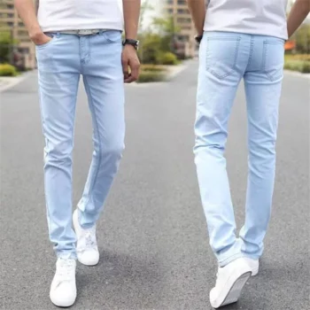 Men’s Stretch Slim Fit Denim Jeans – Casual Light Blue Pants