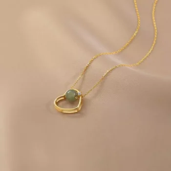 Gold Color Heart Pendant Necklace with Hetian Jade