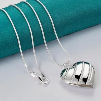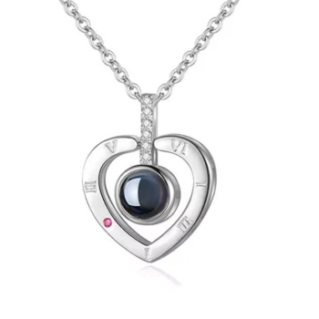 925 Sterling Silver Love Heart Photo Frame Necklace