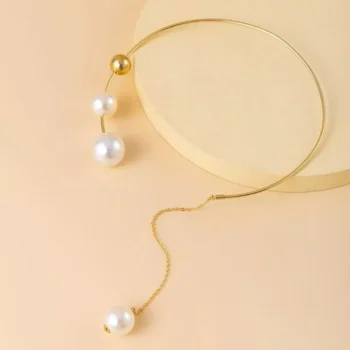 Elegant Geometric Collar Necklace and Pearl Earring Set for Women