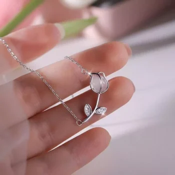 Elegant Microinlaid Tulip Pendant Necklace