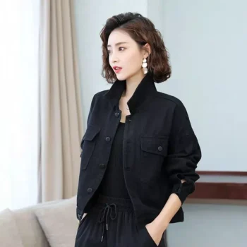 Elegant Slim Fit Denim Short Coat – French Style Women’s Spring/Autumn Jacket