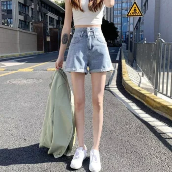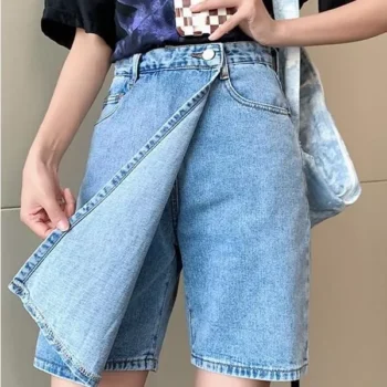 High Waist A-line Denim Shorts – Summer Casual Wide Leg Women’s Shorts