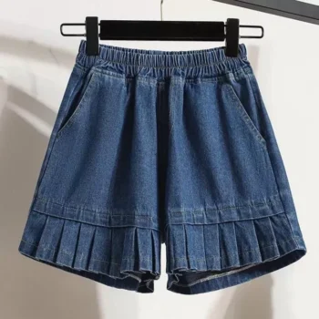High Waist Pleated Denim Shorts for Women – Wide Leg & Pocketed