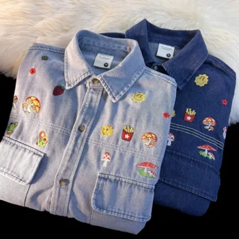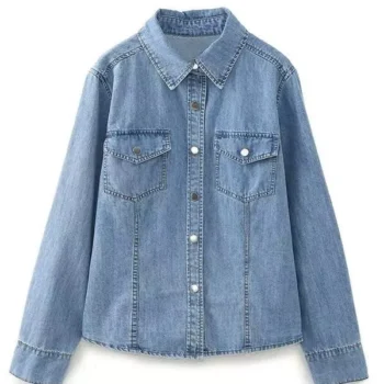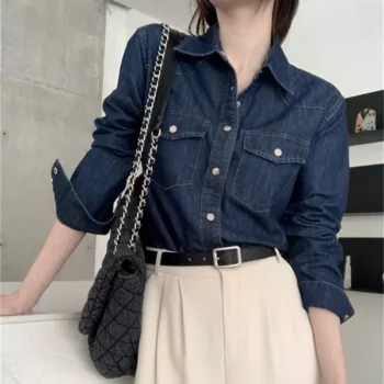 Chic Dark Blue Denim Shirt for Women – Spring Full Sleeve Loose Retro Jacket