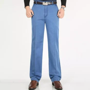High-Waist Denim Jeans – Stretch Straight Fit Men’s Trousers